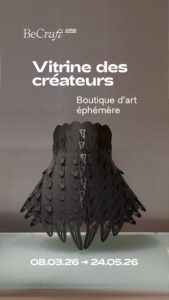 Expo des artistes membres de BeCraft Des créations qui dialoguent avec l’espace, interrogent la matière et révèlent l’intelligence du geste. Plus d’informations, adresse, horaires et évènements lié à l’expo sur le site de BeCraft > https://www.becraft.org/event/vitrine-des-createurs Vous pourrez y voir les premiers prémisse des parures et vêtements de papiers que je réalise actuellement. Collerette, Manchette et tunique. Elles et … lire la suite.