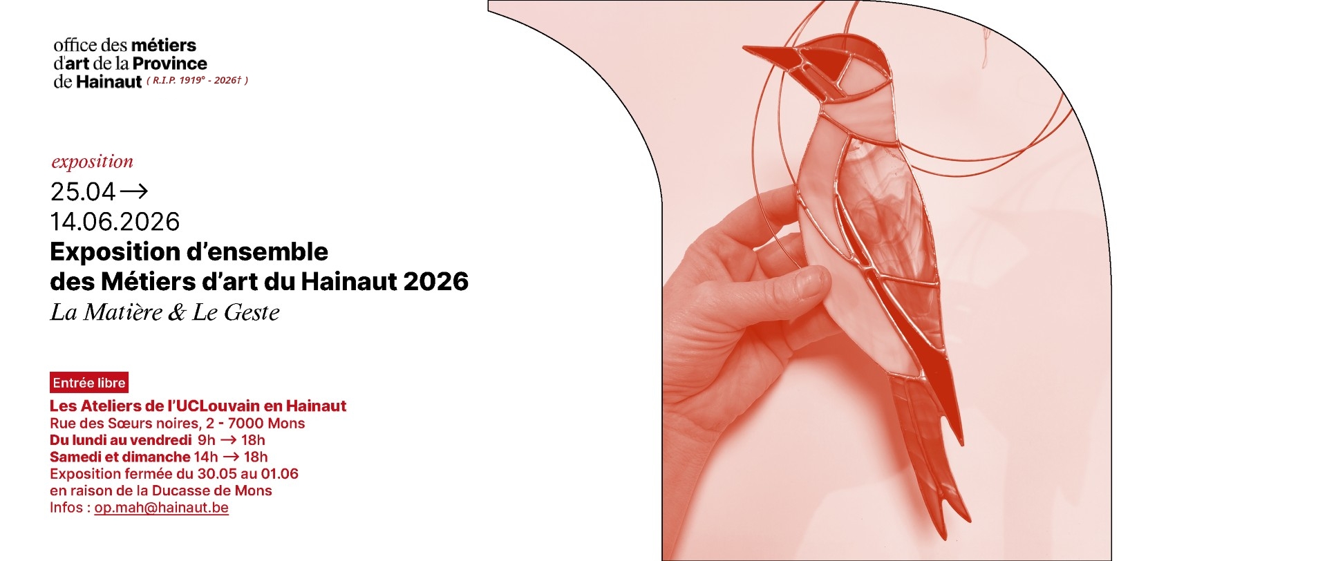Les politiques de la province du Hainaut ayant décidé unilatéralement de supprimer leur « Office des Métiers d’Art », cette exposition annuelle des représentants des métiers d’excellence hennuyer en est donc malheureusement à sa dernière édition. Cette exposition, normalement programmée en fin d’année, est avancée de 6 mois. L’année 2026 clôturera tristement un héritage de 107 ans, fait d’histoire et de tradition, assurant le rayonnement des artisans provinciaux auprès d’un public belge et international.