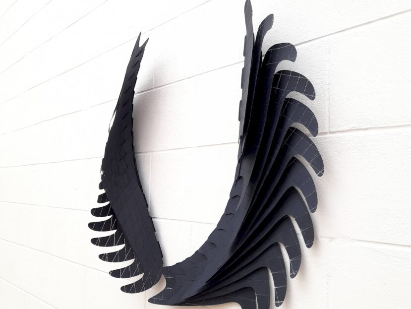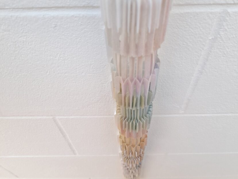 Cette œuvre, toute en longueur, est composée de papiers aux textures intrigantes et uniques. Réalisée par impression jet d’encre et montage par crochets de papier ‘Paperoko’. Un tout grand merci à Wibni Papers ( @wibnipapers ) pour les échantillons de test. L’œuvre se compose de 14 éléments de structure et de 99 languettes de papier, imprimées et découpées numériquement, puis …