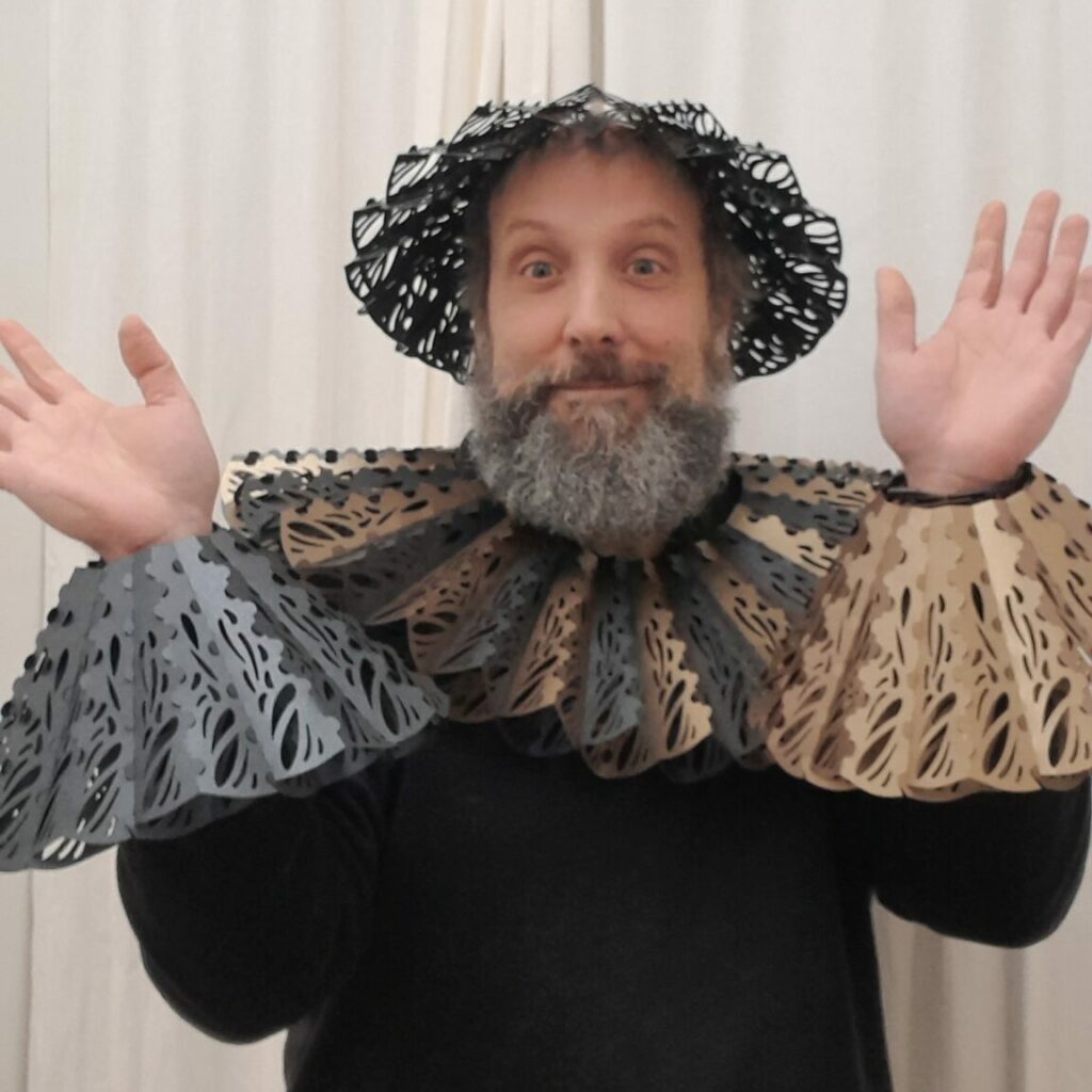Si ces éléments font clairement référence aux fraises de la Renaissance, visibles du XVIe siècle au début du XVIIe siècle, ils devraient s’en détacher et devenir un élément complètement contemporain, avec quelques accents médiévaux.