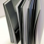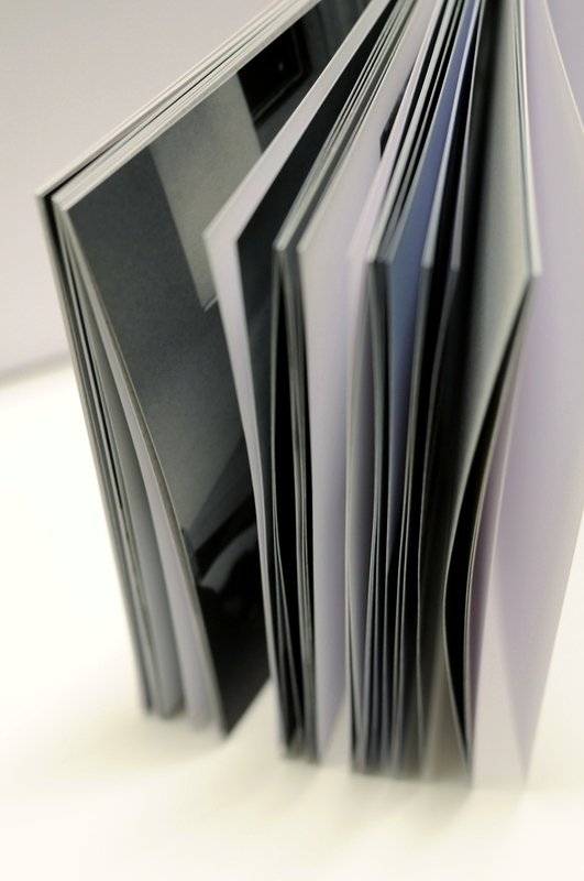 Reliure, exemplaire unique, à couture copte et dos carré, décor de couverture et titrage par transfert au thinner.