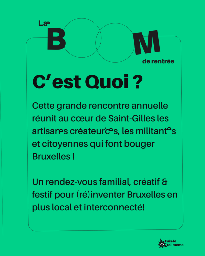 Beaucoup plus d’informations et d’histoires sur ce très bel évènement, sont disponible sur le site de « Fait le toit même » > https://faisletoimeme.be/fr/evenements/2025-04-22-boom-radical/