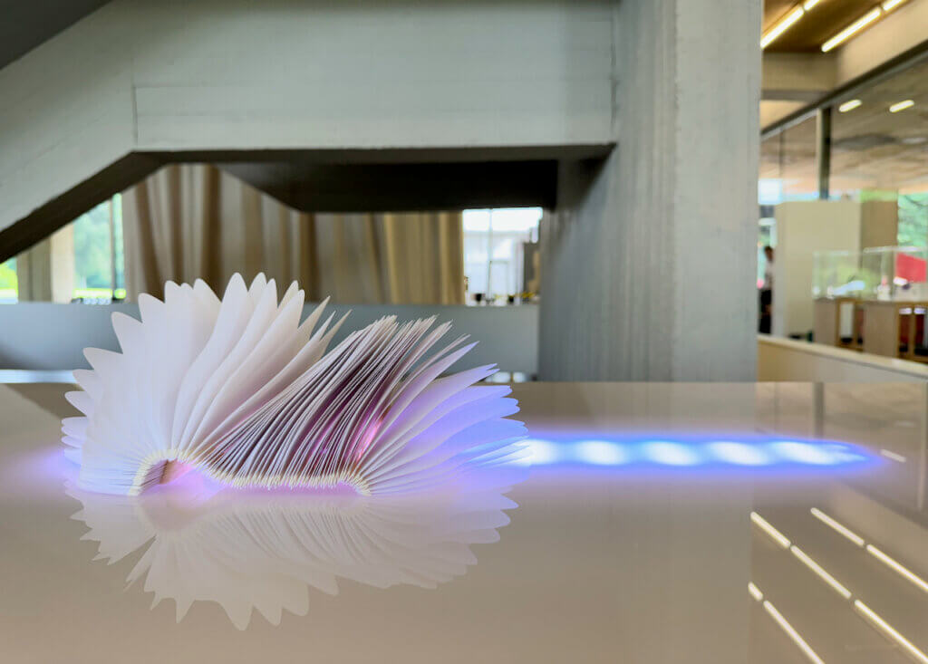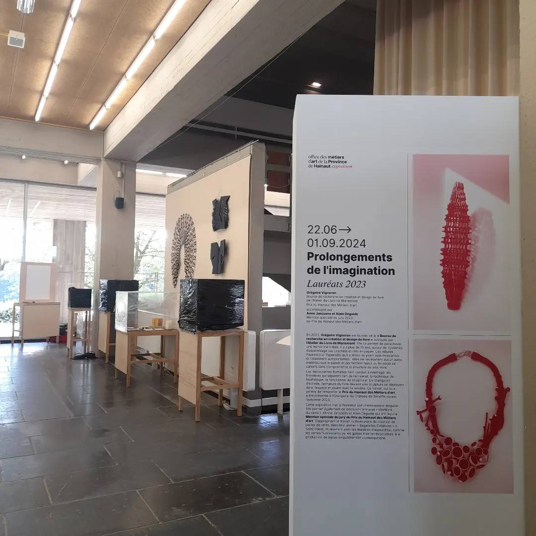 Fort de cette mise en lumière, l’Atelier du Livre et les Métiers d’art de la Province de Hainaut ont souhaité mettre à l’honneur l’ensemble son travail avec une exposition estivale au Musée royal de Mariemont durant laquelle on pourra découvrir la personnalité du lauréat et apprécier son cheminement singulier entre artisanat d’art et design du papier.