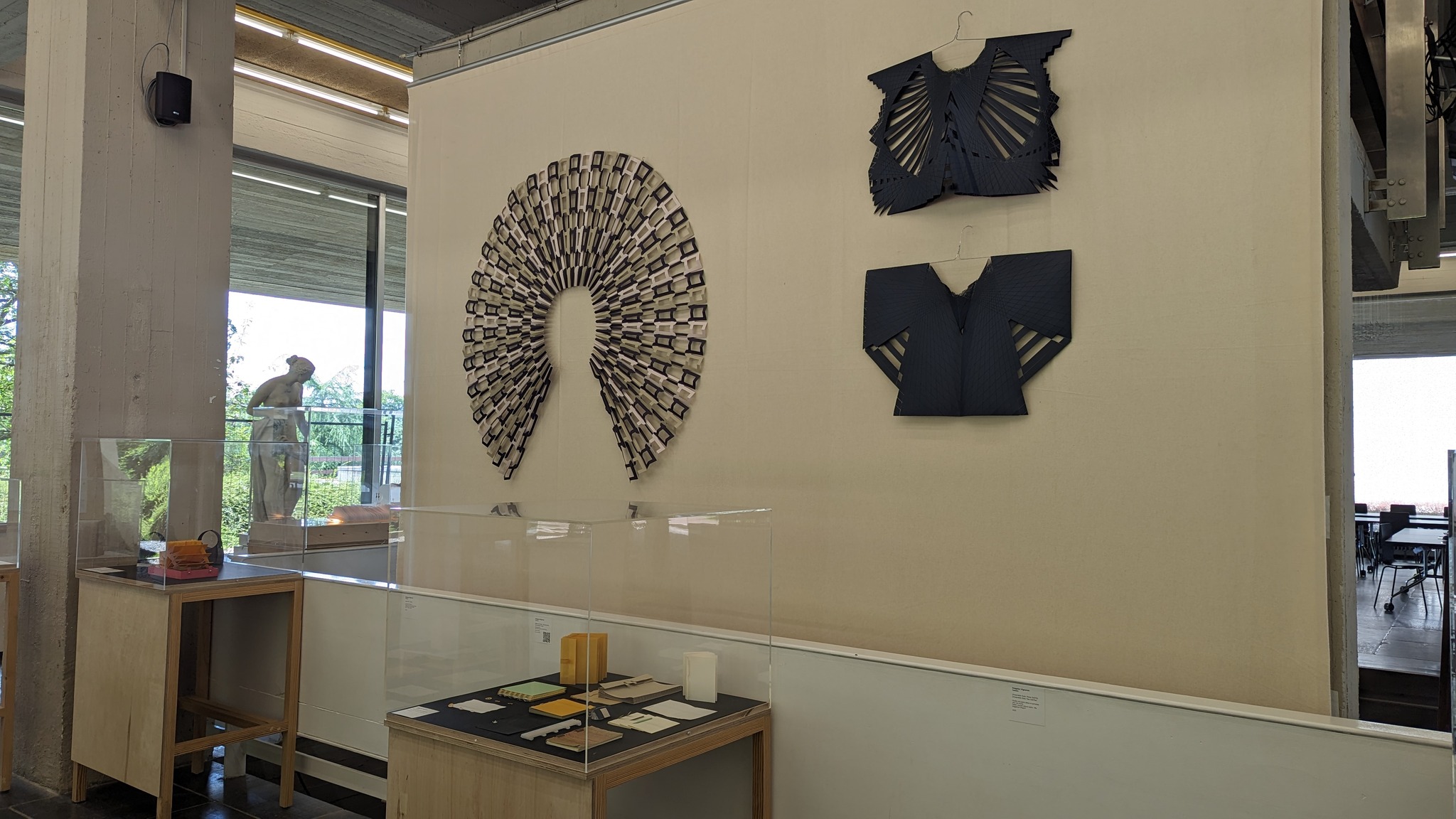 Les découvertes formelles effectuées lors de son parcours l’ont également amené à s’interroger sur la frontière entre art et artisanat, entre le technique et l’esthétique, le fonctionnel et le sculptural. La technique quitte alors l’armature du livre pour devenir une sculpture se déployant dans l’espace et jouant avec la lumière.