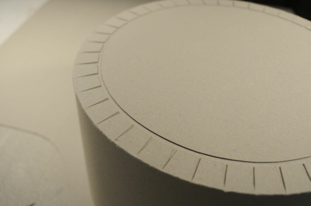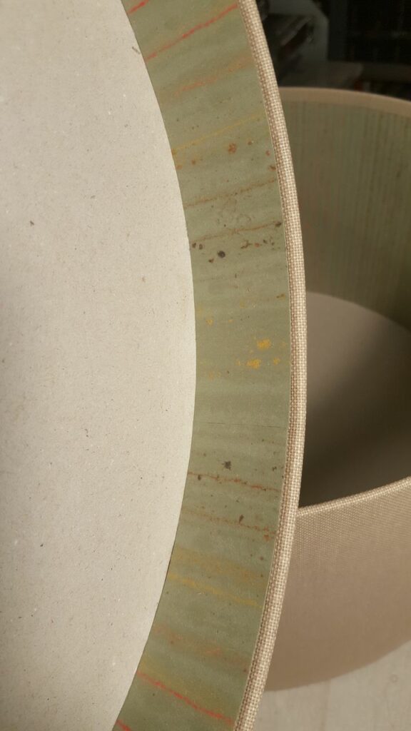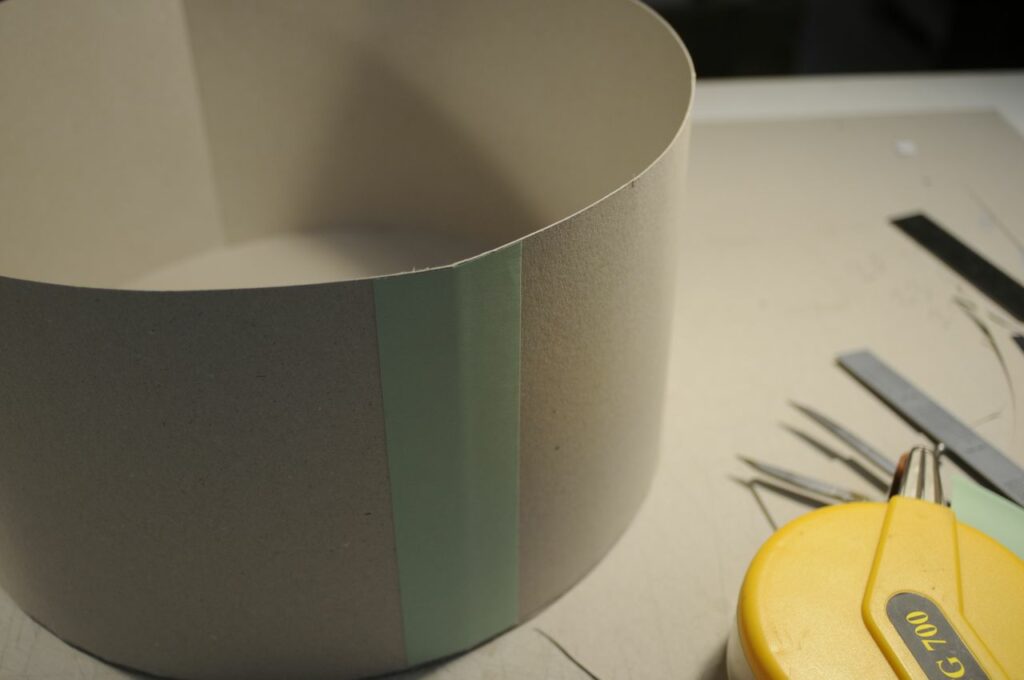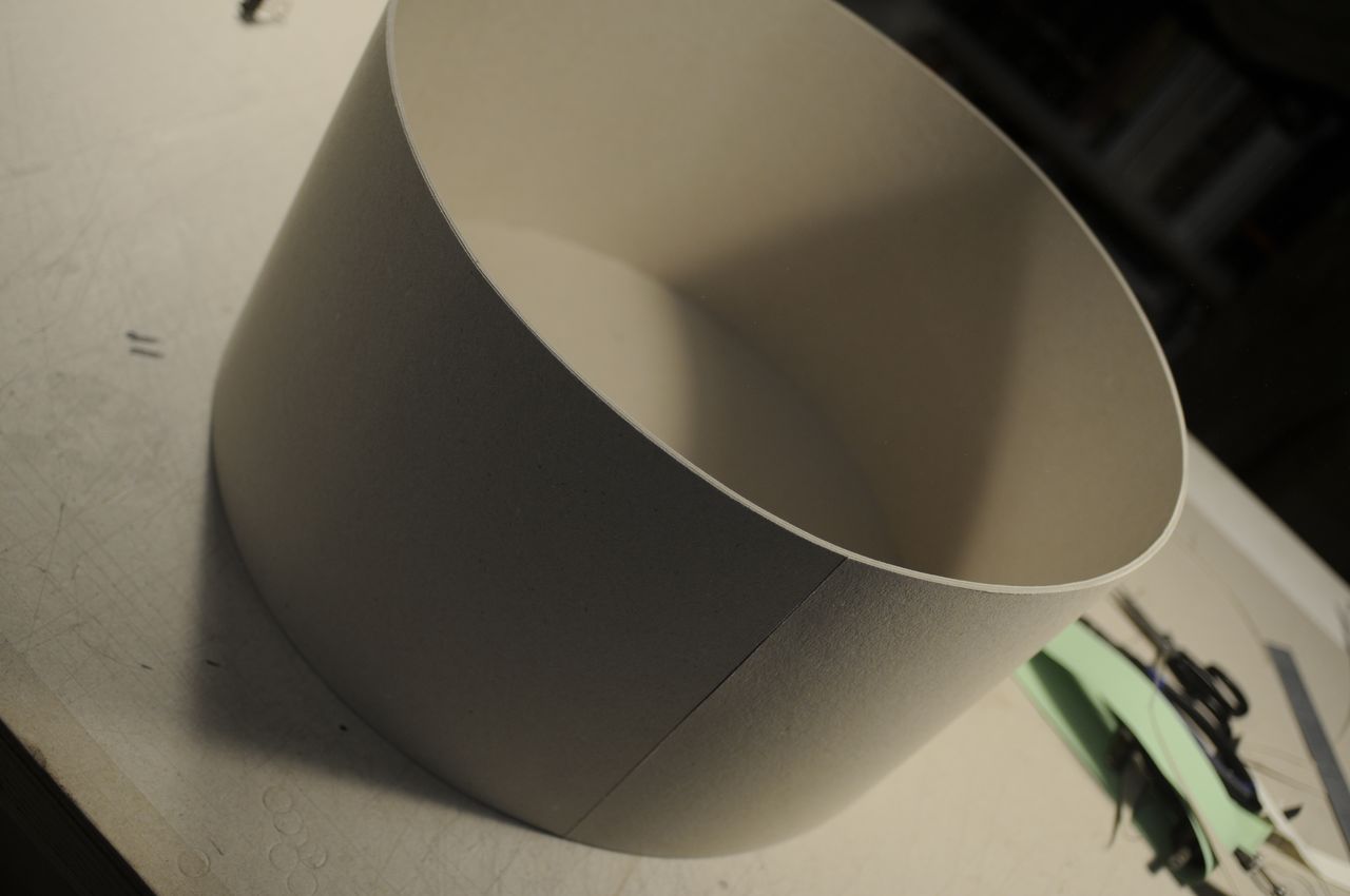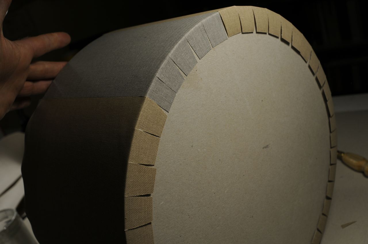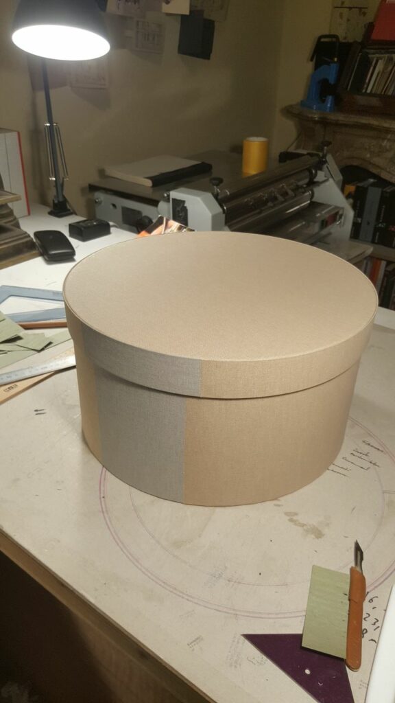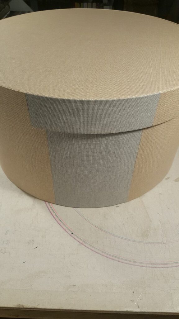 Étapes de fabrications d’une boîte à chapeau, doit encore venir les fonds, le couvercle les fermetures et la sangle de transport.