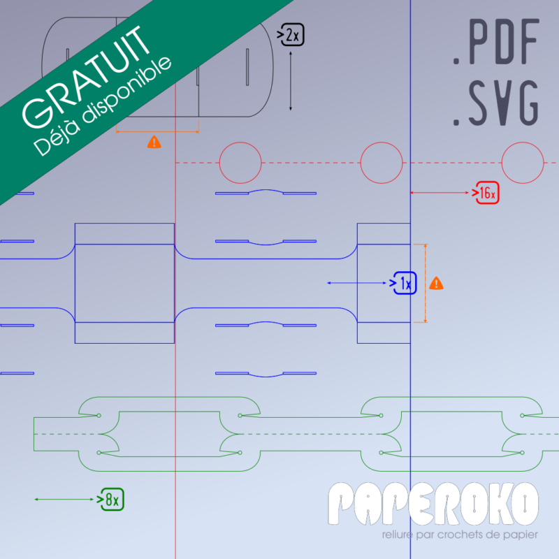 Ces conditions sont uniquement applicables aux fichiers compris dans ce téléchargement, et non aux résultats du travail de reliure que vous en ferez. Ces fichiers constituent une base de départ pour votre création. Il va sans dire que votre travail vous appartient et que je serais ravi d’en voir le résultat. Je serais également ravi de voir cette technique se diffuser, être reprise et améliorée par d’autres à travers le monde.