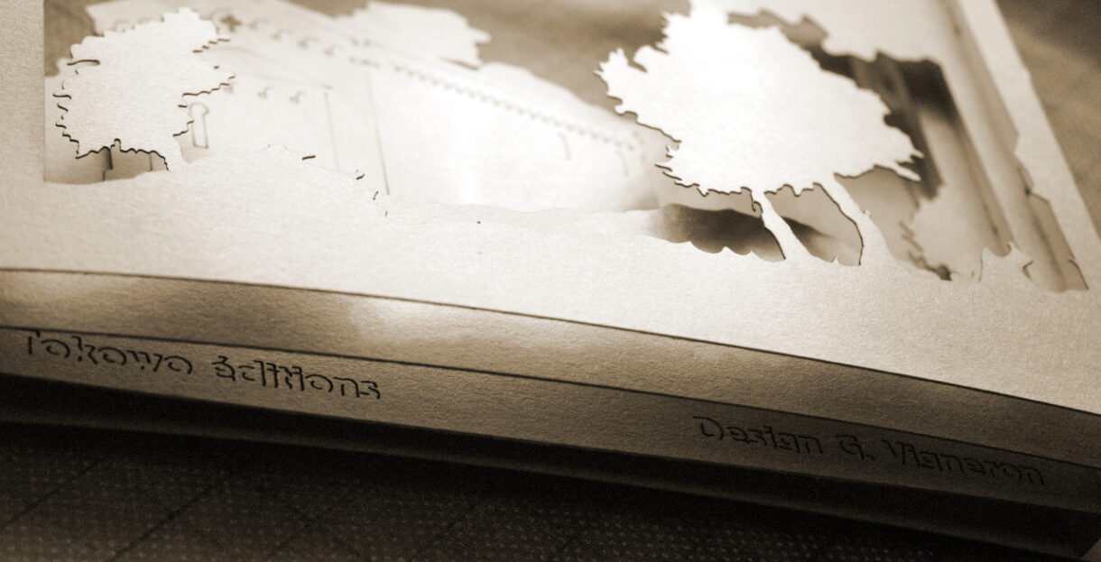 Carte de vœux animée pour www.corse-romane.eu site internet répertoriant les chapelles romane situé sur l’Île de Beauté. Carte ne nécessitant pas de colle, tient par enchâssement de papiers. Dessin d’après photos. Plus d’infos sur la chapelle qui a servie de modèle pour cette carte : San Giovanni Battista dans le village de Poggio di Tallone